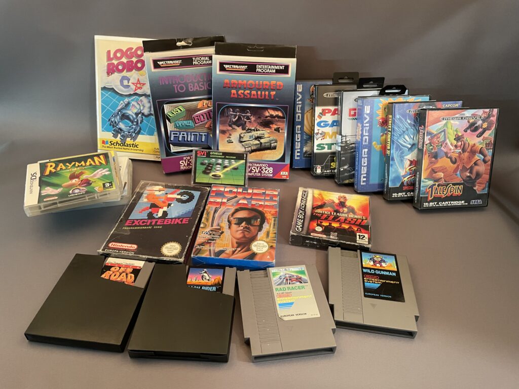 Nintendo NES:Excitebike B NOEPower Blade CIB UKVMach Rider L SCNIvan ”iRONMAN” Stewart´s Super Off-roadn L SCNWild Gunman L SCNRad Racer L SCN Commodore 64:Logo Robot D CIB Spectravideo 328:Introduction to Basic CIB TArmoured Assault CIB TOthello L T Nintendo Gameboy AdvanceJustice League Heroes teh Flash CIB EUR Nintendo DSAngry Birds Trilogy 3DS CIBCaptain Morgane and […]